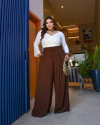 Calça Plus Size Pantalona com Fenda na Perna Lorena